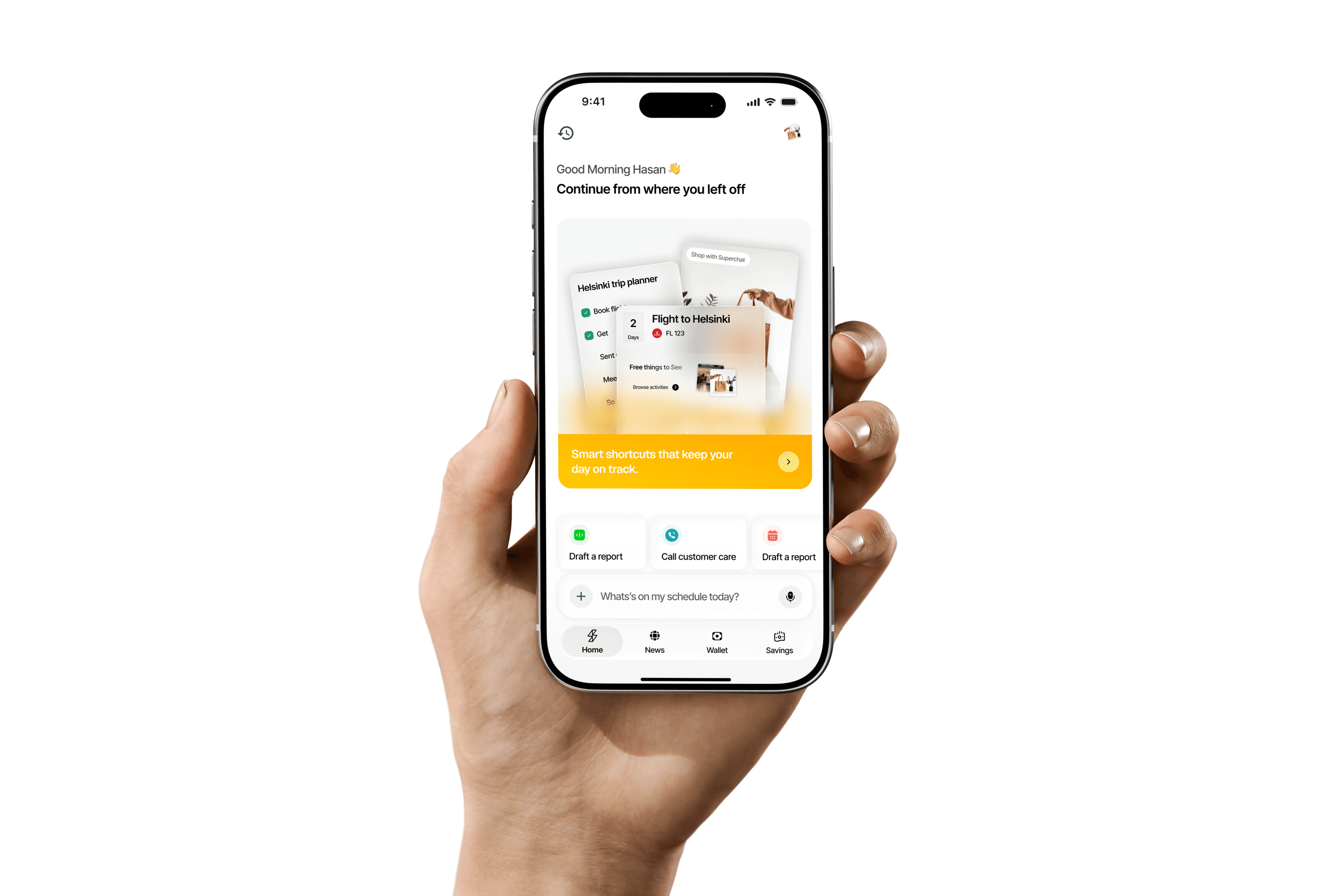Superchat brings your money, tasks, reminders, and real-world actions together. Ask once, and Superchat takes care of the rest so you save time and mental energy.