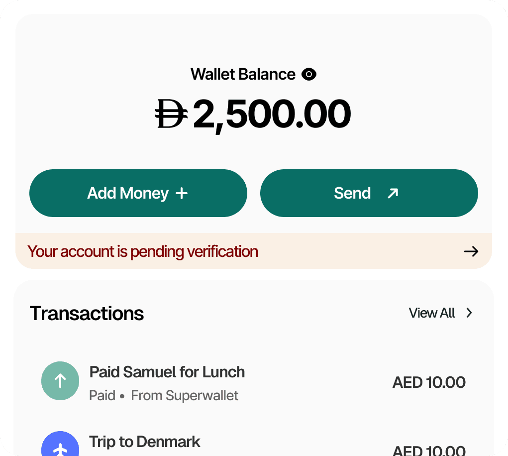 A secure wallet for payments, balances, and transactions.