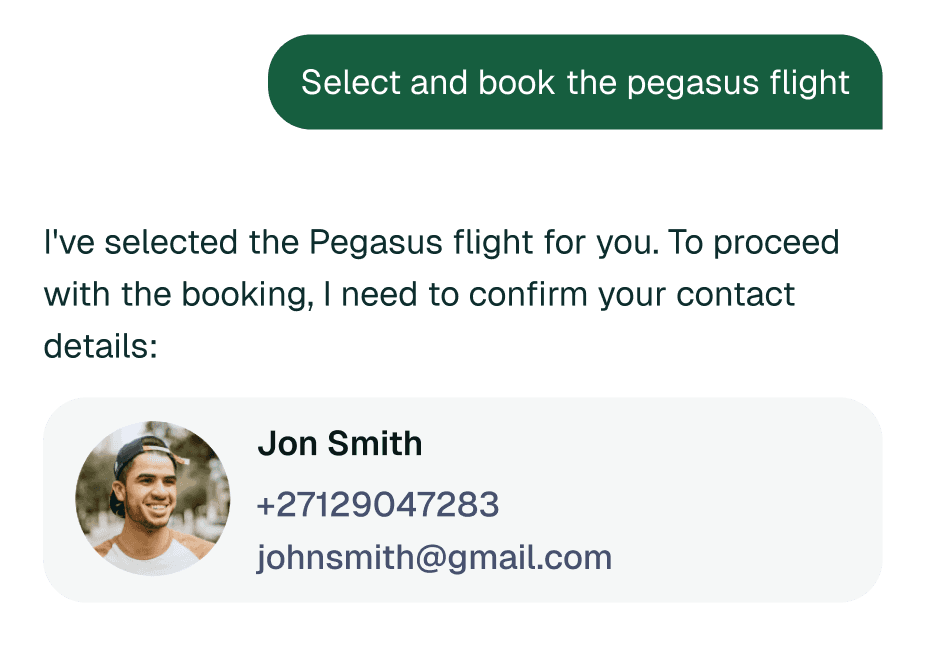 The experience feels personal because it is. Superchat remembers your past trips, favorite airlines, and seat choices.