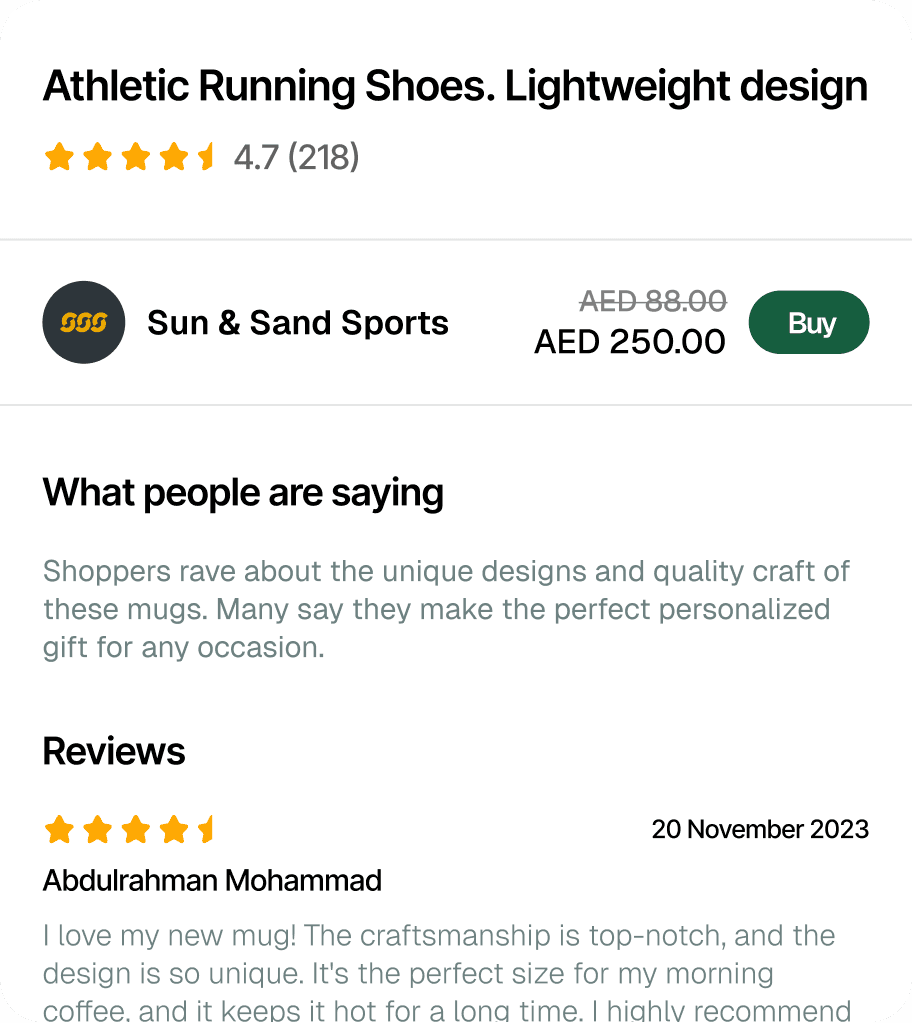 In seconds, it searches across UAE e-commerce platforms and shows the best options.