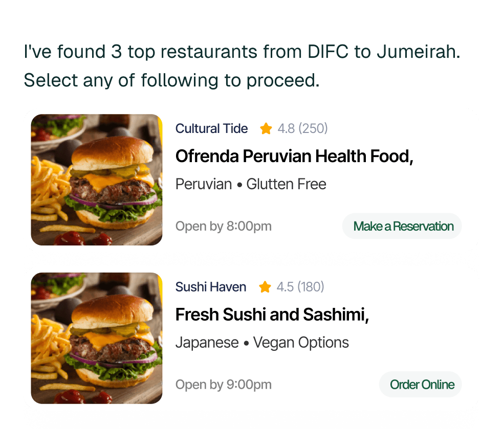 Just type, “Book a table for two in JBR at 8 pm,” and Superchat finds options instantly.